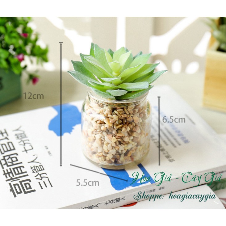 Chiều cao trung bình của cả cây và chậu là 12cmĐường kính chậu 5.5cm