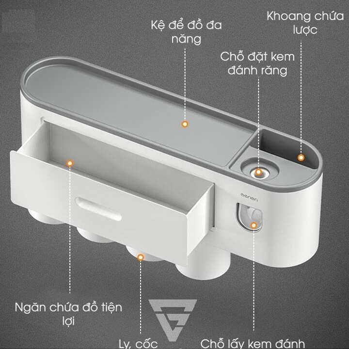 *Có giá treo bàn chải đánh răng giúp bàn chải đánh răng luôn sạch sẽ, riêng biệt và gọn gàng