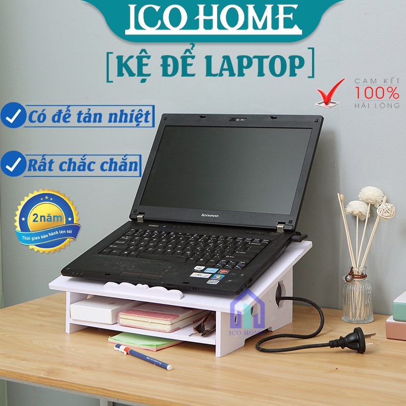 Giới thiệu Giá để máy tính laptop bằng gỗ để bàn, có mẫu khay đựng bút - Ico Home