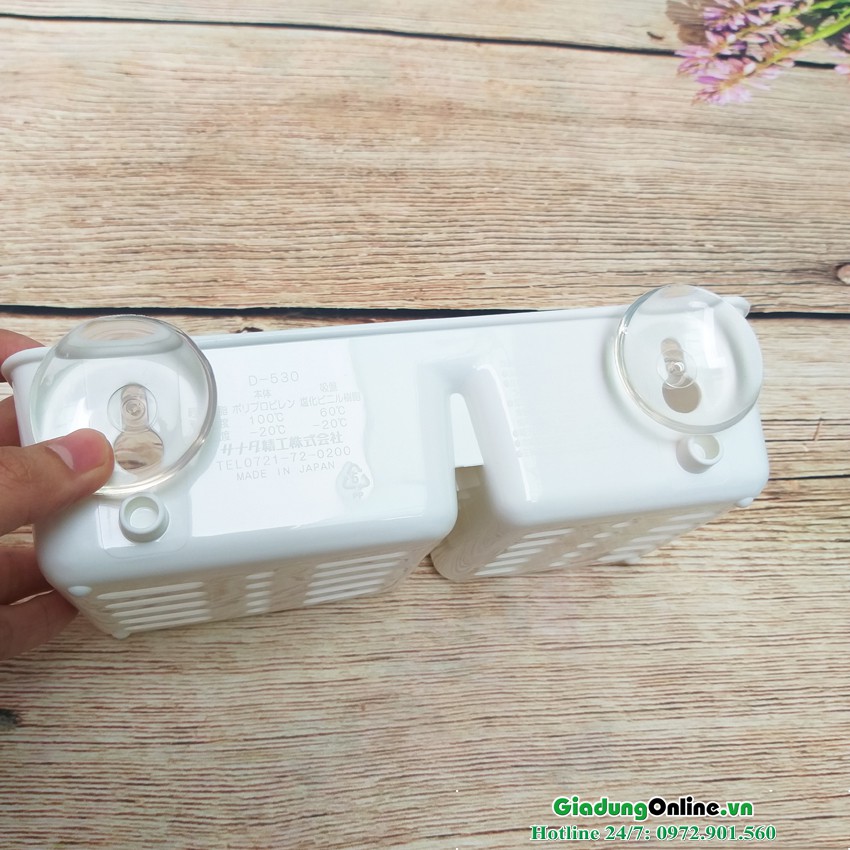 Giá để miếng rửa bát, xà phòng chia 2 ngăn hút chân không Sanada hàng Nhật