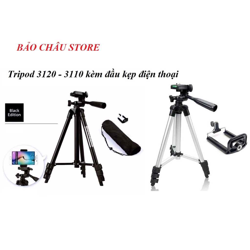 - Giá đỡ chụp ảnh Tripod 3110, 3120 gồm 4 phần của chân nhôm kéo dài. Giá đỡ chụp ảnh Tripod 50cm có 2 phần nhôm kéo dài.