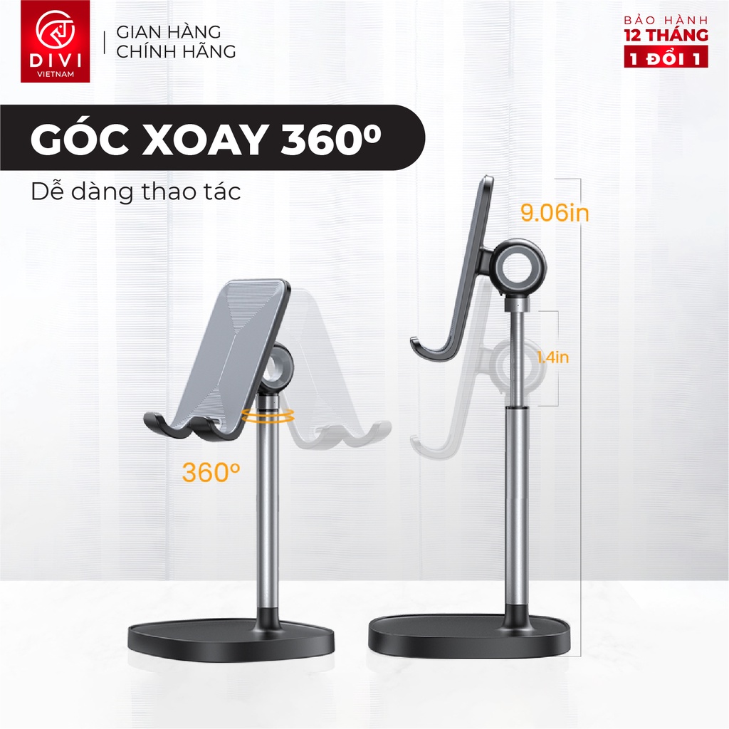 Giá đỡ điện thoại để bàn DIVI E757 - Xoay độ khung gấp gọn - Hàng phân phối chính hãng - Bảo hành 12 tháng 1 đổi 1