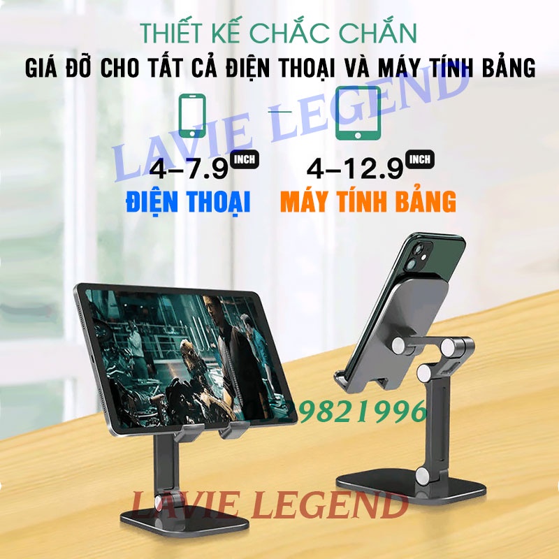 Giá đỡ điện thoại giá đỡ máy tính bảng cao cấp để bàn gấp gọn dùng livestream học online, xem phim, Facetime Đế Chắc Chắn