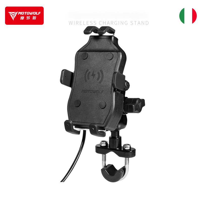 Giá đỡ điện thoại sạc không dây Motowolf chính hãng gắn xe máySản phẩm được thiết kế bẳng nhựa tổng hợp với thiết kế thông minh, kết hợp sạc không dây chuẩn QI