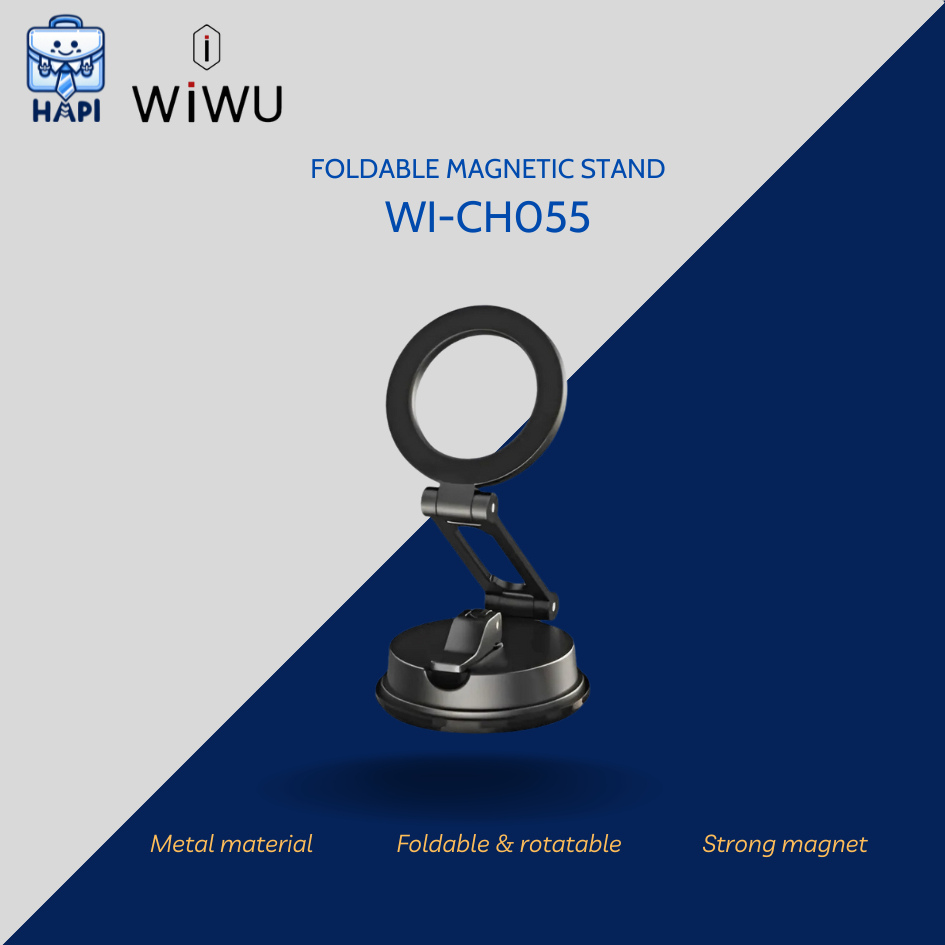 Giới thiệu Giá đỡ điện thoại từ tính hàng chính hãng WiWU Wi-CH055 có thể gập lại và xoay 360 độ, dễ dàng mang theo, phù hợp dùng trên ô tô