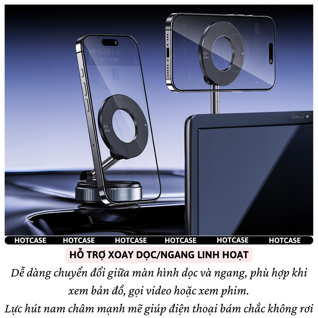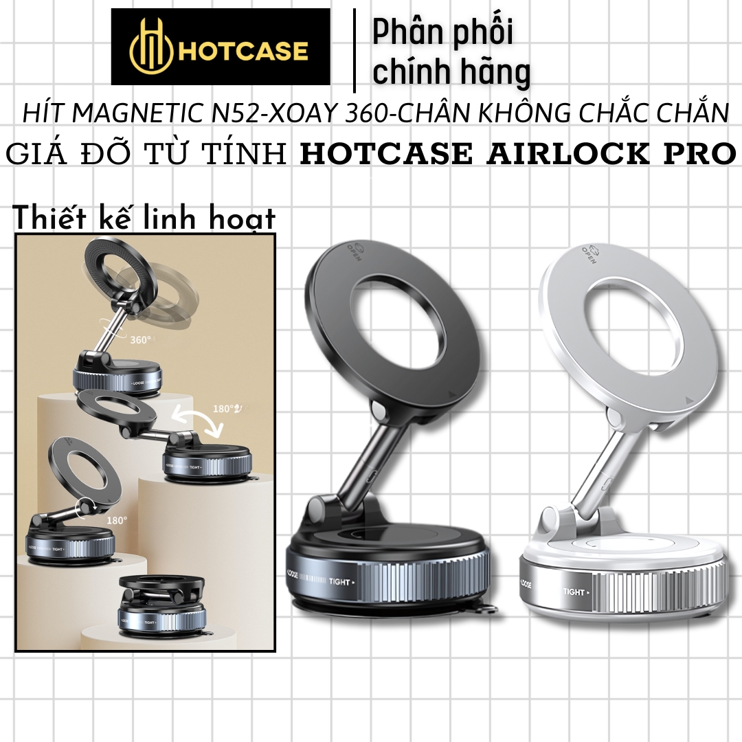 Model | Giá đỡ điện thoại từ tính Magnetic nam châm hút chân không xoay 360 độ cho xe hơi ô tô, bàn làm việc, phòng tắm hiệu Hotcase Airlock Pro |