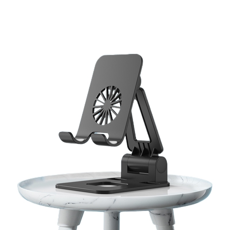 Black Foldable Telescopic Phone Holder / Portable Lazy Flat ipad Universal Stand / Double Folding Heat Dissipation Support Frame