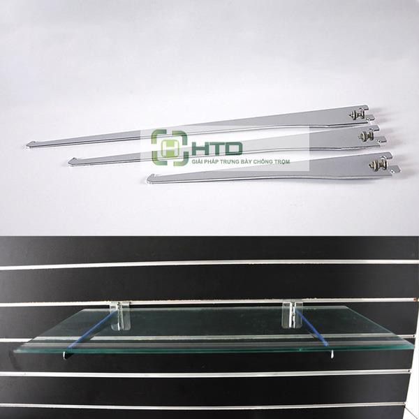 Được gắn lên thanh ray để đỡ kính làm kệ trưng bày hàng hóa tại các cửa hàng , siêu thị. Phía đầu tay đỡ có móc giúp cố định kính và chống trượt ra ngoài