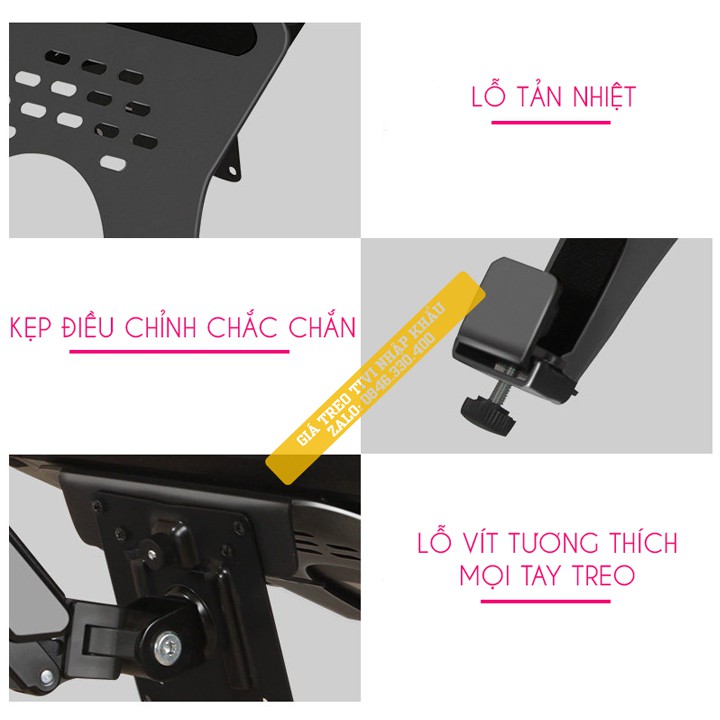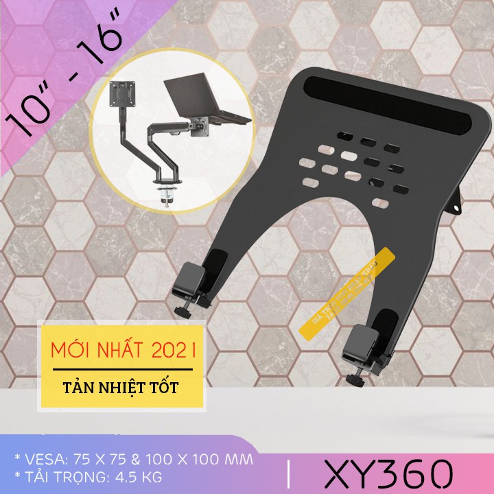 Giá Đỡ Kẹp Laptop XY360 10-16Inch - Đế Tản Nhiệt Macbook - Máy Tính Bảng - Ipad - Tương Thích Với Các Loại Tay Treo*** Lưu ý đây chỉ là phần đỡ kẹp màn hình hoặc Laptop, Macbook - Khách hàng cần phải có thêm giá treo để lắp đặt cùng.