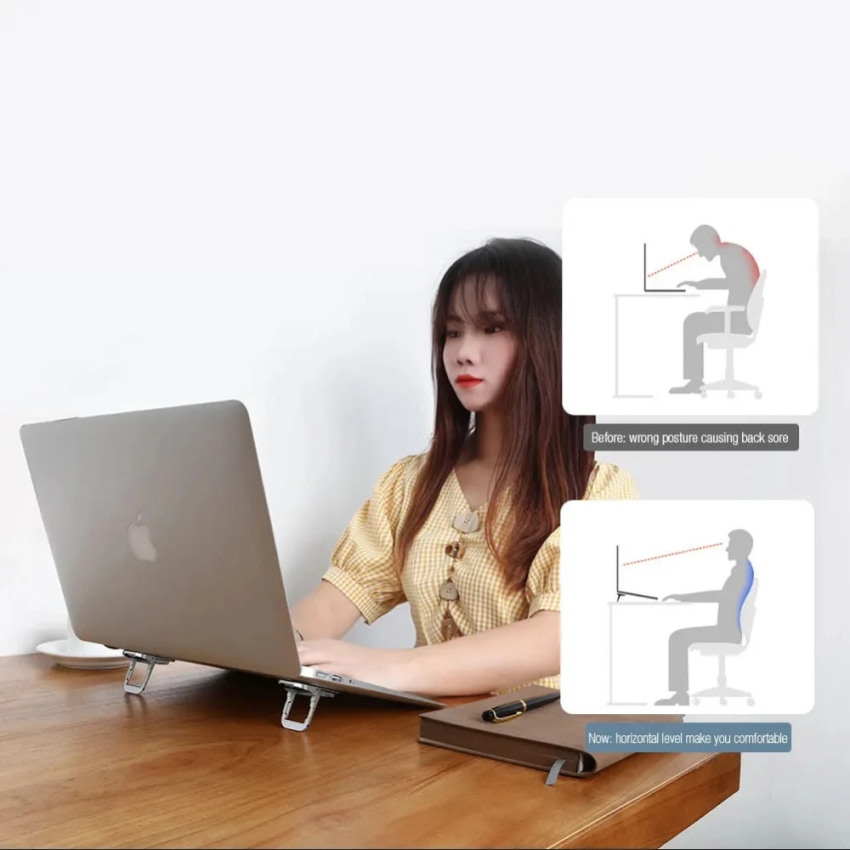 Chất liệu nhôm cao cấp tản nhiệt nhanh, giúp laptop luôn mát khi sử dụng Gấp gọn linh hoạt, dễ mang theo, phù hợp làm việc và học tập mọi nơi Điều chỉnh nhiều góc cao thấp, giúp ngồi đúng tư thế, giảm mỏi cổ vai gáy