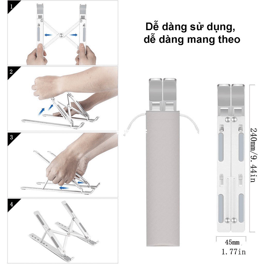 Giá Đỡ Laptop - Giá Đỡ Macbook Nhôm Cao Cấp Gấp Gọn Tản Nhiệt Cho Laptop, Máy Tính Bảng, iPad, Điện Thoại