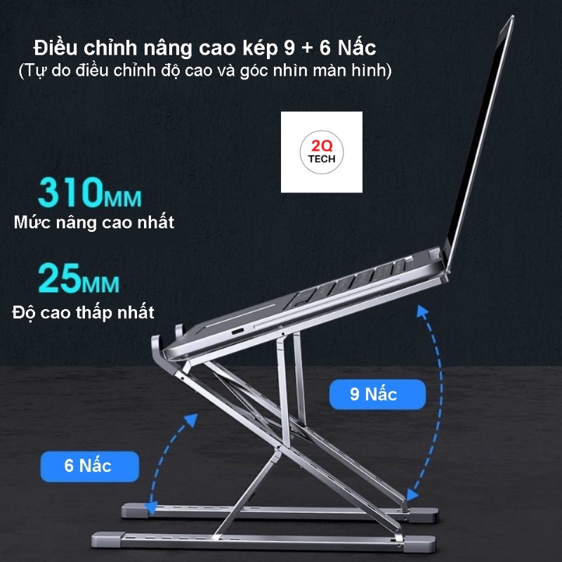 Giá đỡ Laptop, kệ đỡ Laptop bằng nhôm 2 tầng 1tầng có thể chỉnh góc nhìn, nâng chiều cao, mẫu mới N8 N3 PL1