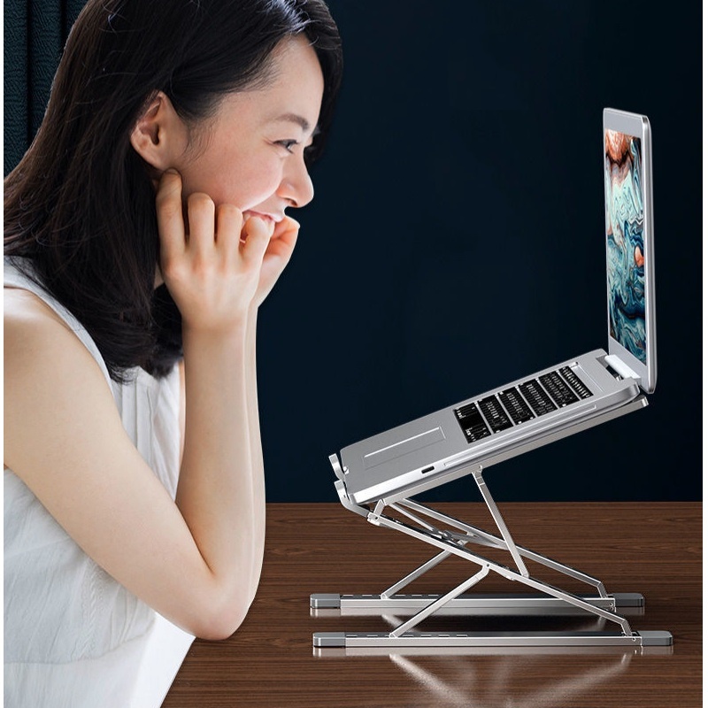 -Giá đỡ laptop nhôm có thể gập gọn mang theo hàng ngày rất tiện dụng, sau khi gấp gọn kịch thước chỉ ngang 1 chiếc quạt giấy.