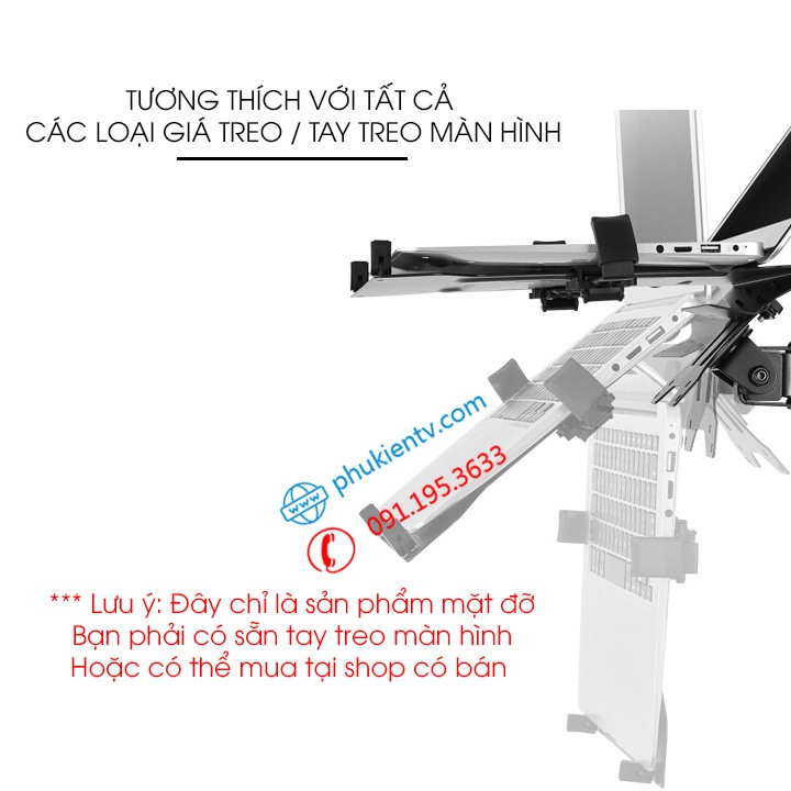 Giá đỡ LAPTOP, Macbook 10 - 15.6 Inch - Kệ Để MÁY TÍNH BẢNG , IPAD Tản Nhiệt Tốt - Lắp Cùng Giá Treo Màn Hình Máy Tính*** Lưu ý: Đây chỉ là sản phẩm mặt đỡ laptop, macbook - Bạn phải có sẵn tay treo màn hình - Hoặc có thể mua tại shop có bán. Hãy lưu ý tránh nhầm lẫn trước khi đặt mua