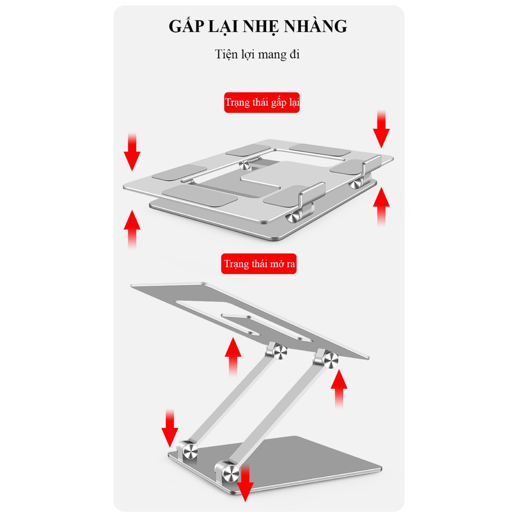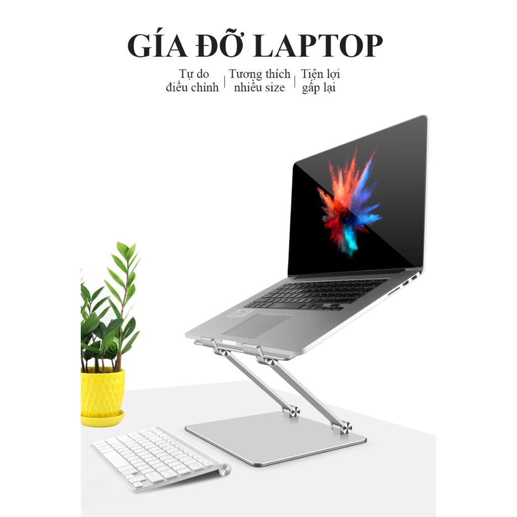Giá Đỡ Laptop Macbook Để Bàn Chất Liệu Hợp Kim Nhôm Cao Cấp Tản Nhiệt – Nâng Hạ Điều Chỉnh Độ Cao - Gấp Gọn Cho Kích Cỡ 10-18 InchesĐẶC ĐIỂM NỔI BẬT :