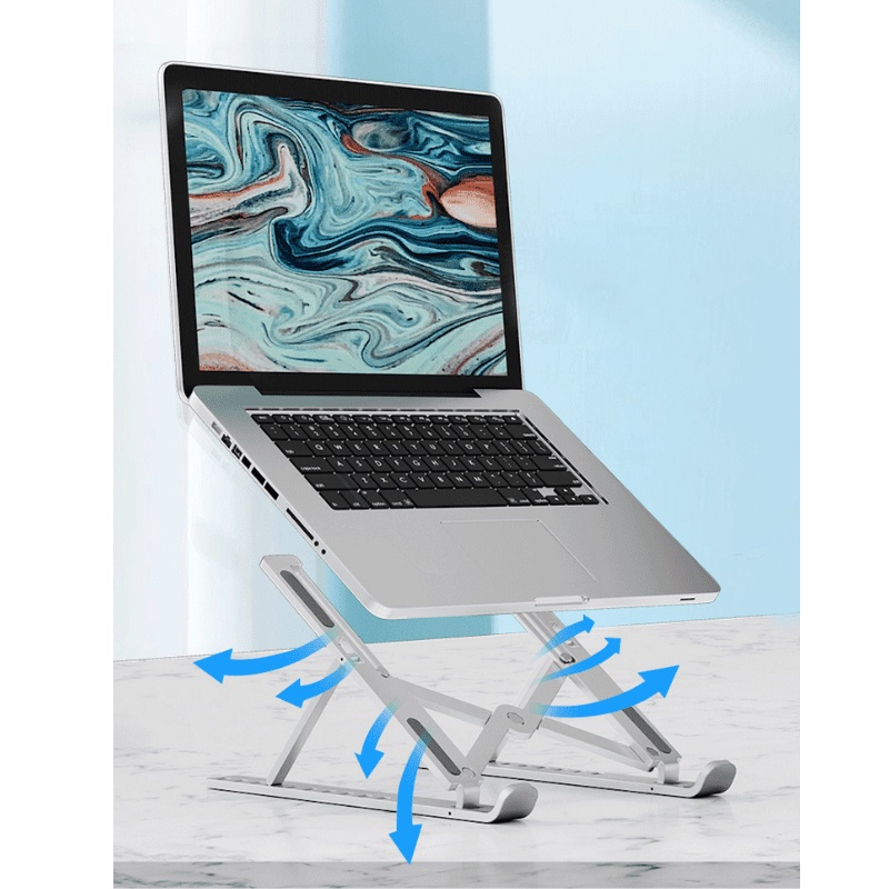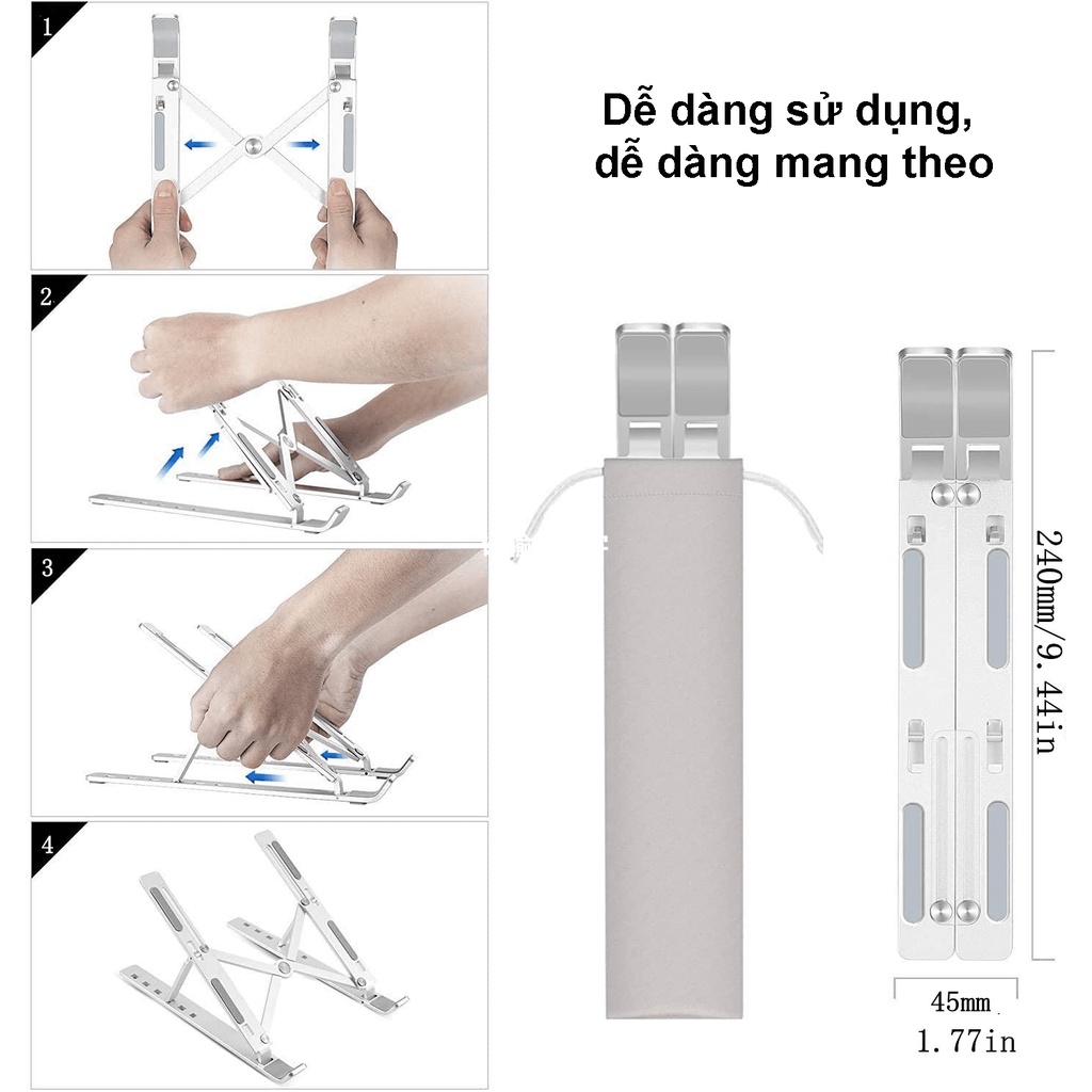 - Giá đỡ laptop MacBook, Ipad, máy tính bảng, Surface... bằng hợp kim nhôm + có thể xếp gọn + điều chỉnh độ cao.