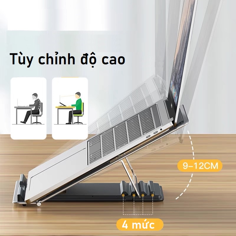 Giá đỡ LAPTOP, MACBOOK, IPAD CCTT8 đế kê tản nhiệt laptop nhôm Aluminum cao cấp có thể gấp gọn, điều chỉnh độ cao.