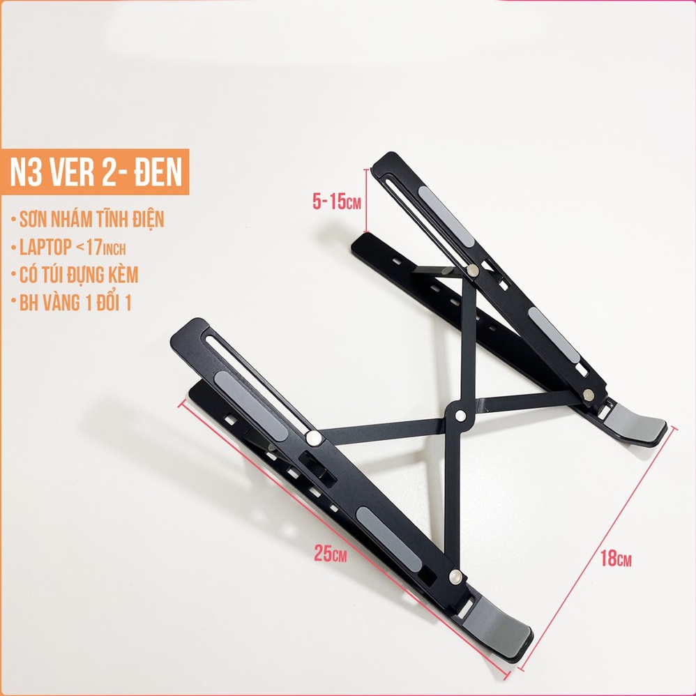 1️⃣Mẫu N3 Ver 1 là mẫu giá đỡ ra đời đầu tiên, thiết kế làm nên thương hiệu giá đỡ laptop, chất liệu nhôm, được anode bạc nên sáng bóng. Tuy nhiên chất liệu sơn này không quá bền, kích thước hơi nhỏ hơn sau với đời sau nên phù hợp với laptop tầm 14 inch