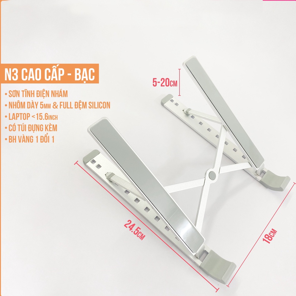 3️⃣N3 Cao cấp: Hoàn thiện cao cấp hơn so với các phiên bản N3 khác khi được trang bị full lớp đệm silicon và nhôm dày 5mm, chỉ phù hợp laptop <15inch