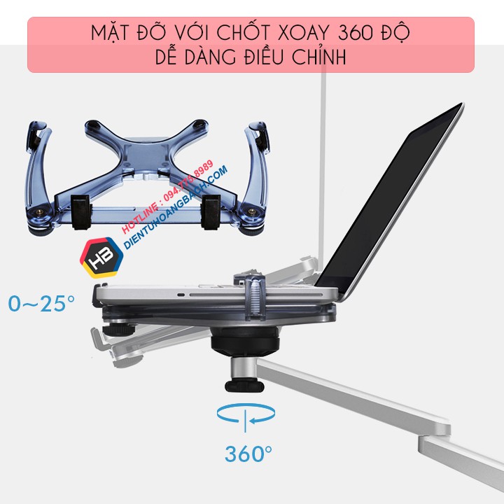 Giá Đỡ Laptop - Macbook OA 1S 10 - 15 Inch - Tay Đỡ Máy Tính Bảng - Ipad 9 - 10 Inch - Gắn Bàn Đa Năng