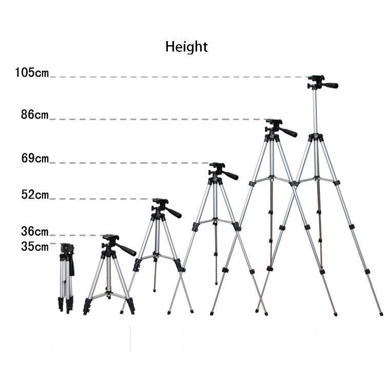 - Chân máy đa năng Tripod với khả năng điều chỉnh chiều cao một cách linh hoạt từ 35 cm đến 110 cm để bạn thoải mái chụp ảnh ở nhiều góc độ khác nhau.Sản phẩm làm bằng inox và nhựa cao cấp với kiểu dáng hiện đại và nhỏ gọn, có thể dễ dàng mang theo khi đi du lịch, dã ngoại... Trục giữa linh hoạt có thể xoay lên, xuống và xoay tròn 360 độ giúp bạn dễ dàng bắt được những góc hình ưng ý nhất. Đặc biệt bạn được tặng kèm 1 đầu cố định điện thoại và máy ảnh giúp cho bạn có thể dễ dàng có được những bức ảnh tuyệt đẹp cùng gia đình, bạn bè...