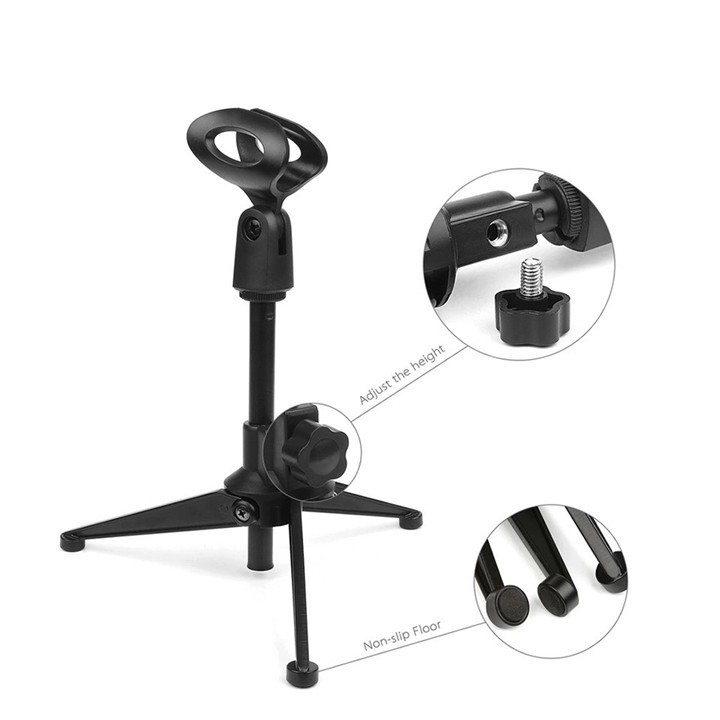 Giá Đỡ Micro 3 Chân Kẹp Để Bàn Microphone Stands Xếp Gọn Đa Năng Chiều Cao Tối Đa 24cmPhục vụ nhu cầu hát karaoke chuyên nghiệp của ngươi tiêu dùng shop cung cấp sản phẩm mới Chân micro để bàn hay còn gọi là giá đỡ micro mini với kích thước nhỏ gọn cao 18cm có thể gấp gọn cho bạn mang đi bất cứ nơi đâu phục vụ hát karaoke mọi lúc mọi nơi.