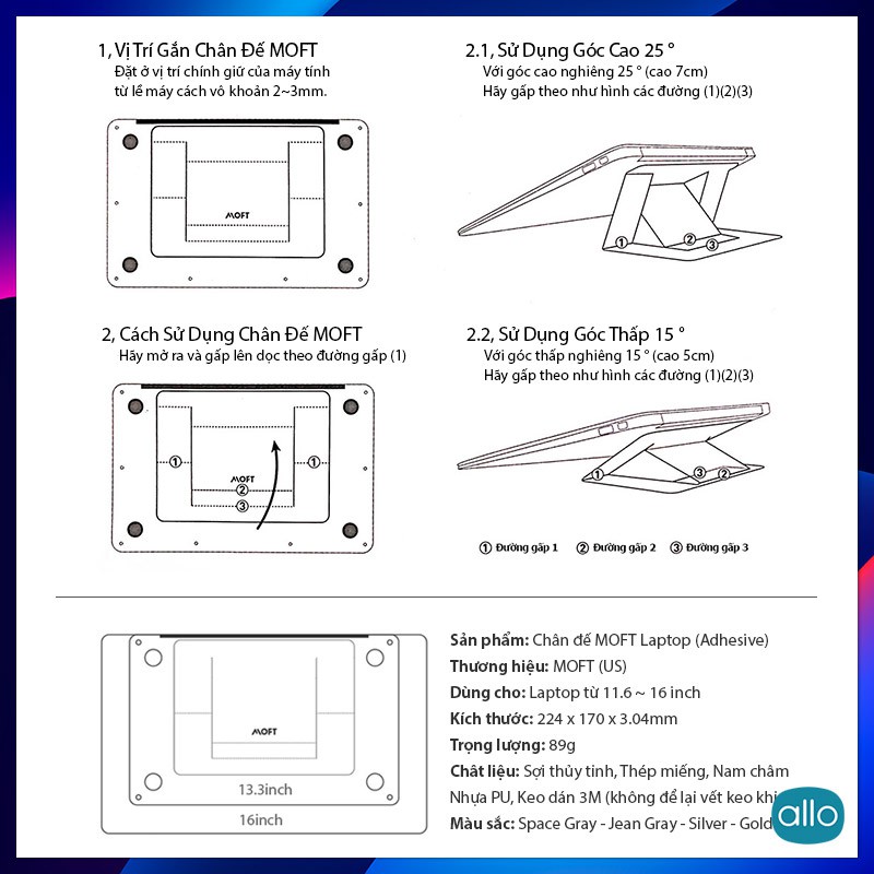 Chân đế giá đỡ laptop Moft là sản phẩm được thiết kế cho người làm việc di động cần di chuyển nhiều, với độ mỏng và nhẹ như vô hình như là một phần tích hợp trực tiếp vào máy tính vô cùng tiện lợi.SỰ KHÁC NHAU CÁC PHIÊN BẢN MOFT LAPTOP STAND: