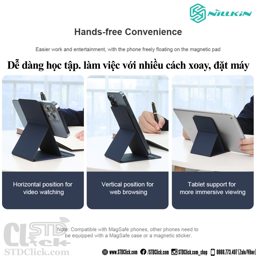 GIÁ ĐỠ NAM CHÂM NILLKIN SNAPBASE CHÍNH HÃNG DÀNH CHO IPHONE 12 - 13 SERI có Kích thước của một chiếc ví khi gấp lại, nó dễ dàng phù hợp với mọi không gian làm việc, học tập cũng như thư giãn