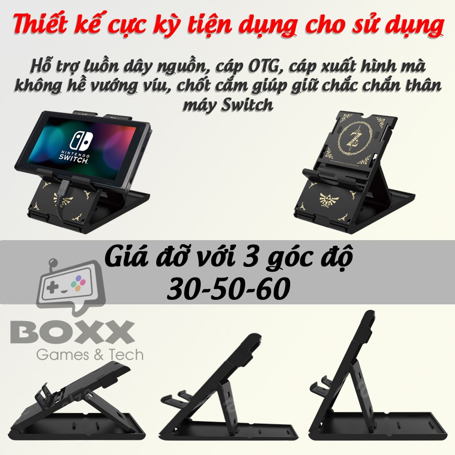 Đế dựng Nintendo Switch, Giá đỡ Switch điều chỉnh độ cao chính hãng Hori - Thương hiệu được cấp bản quyền chế tạo phụ kiện cho Nintendo Switch với chất lượng đã được kiểm chứng.Công dụng: