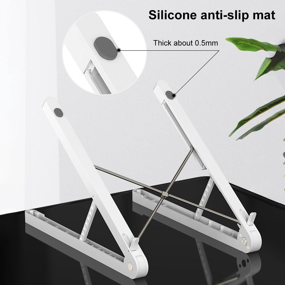 - Kệ Laptop có miếng đệm silicon bảo vệ chống trượt đảm bảo thiết bị của bạn được đặt ổn định và không bị lung lay. Các miếng đệm này cũng giúp chống trầy xước khi tiếp xúc với laptop của bạn.