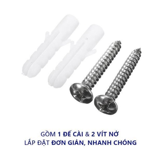 Sản phẩm gồm 1 đế cài & 2 vít nở với cách lắp đặt đơn giản, nhanh chóng.