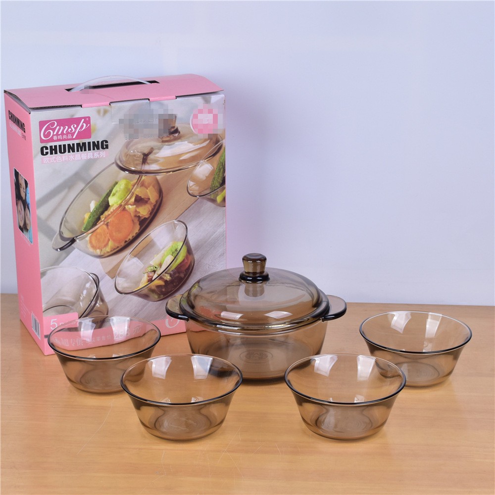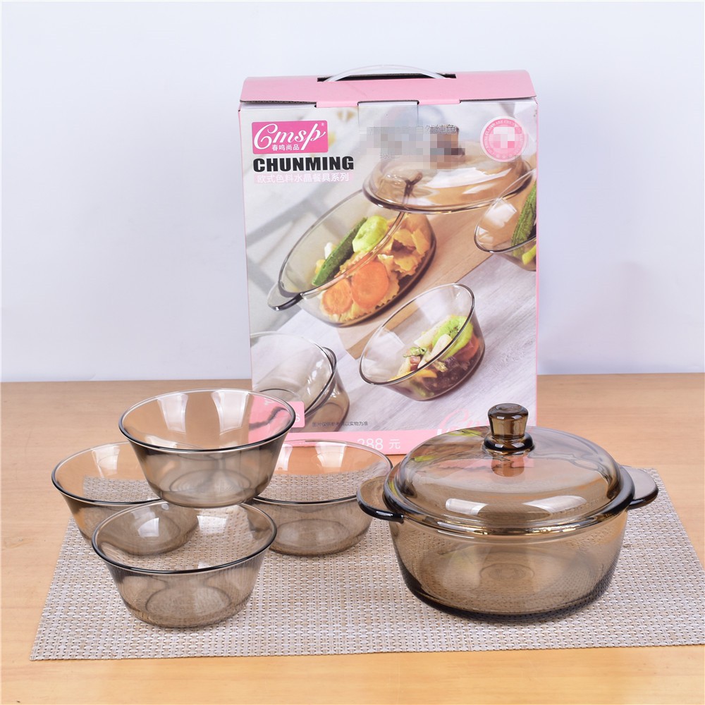Tên sản phẩm: Bộ Nồi Bát Thủy Tinh Màu Vàng Trà Trong Suốt Phong Cách Châu Âu Chịu Nhiệt TốtChất liệu: Thuỷ tinh