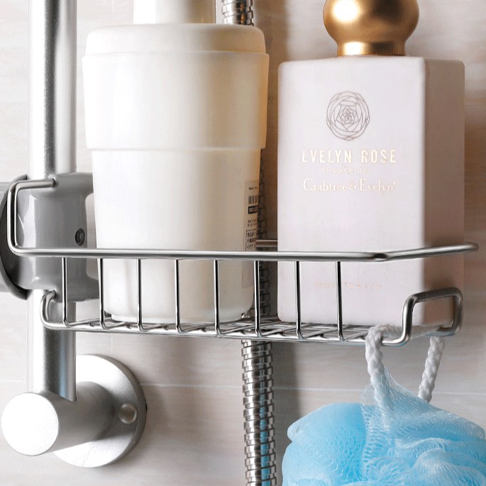 - Phần đáy của kệ thiết kế dạng thanh nên nước sẽ thoát nhanh chóng và không đọng lại nên giúp cho xà bông, đồ dùng luôn khô ráo sạch sẽ