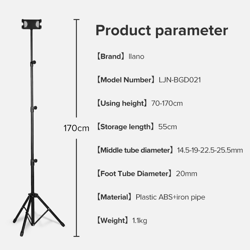 Giới thiệu Giá giữ điện thoại/ iPad llano phát sóng trực tiếp đứng trên sàn chiều cao 1.7M điều chỉnh được cho loại 4.7-13 inch