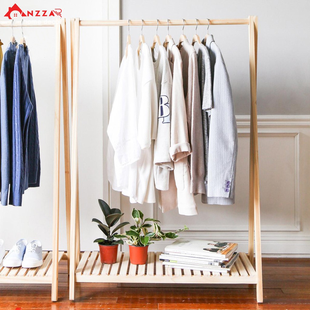 - Giá treo quần áo gỗ dùng để treo và cất giữ quần áo trong phòng ngủ thay thế tủ đồ.