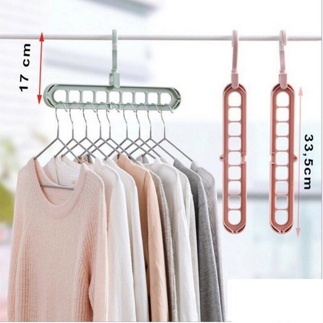 Nhà cửa & Đời sống > Sắp xếp nhà cửa > Mắc áo || [GIÁ HỦY DIỆT] Combo 3 Móc treo quần áo đa năng thông minh 9 lỗ gấp gọn / Móc phơi quần áo đa năng thu gọn 9 ô mócCòn hàng