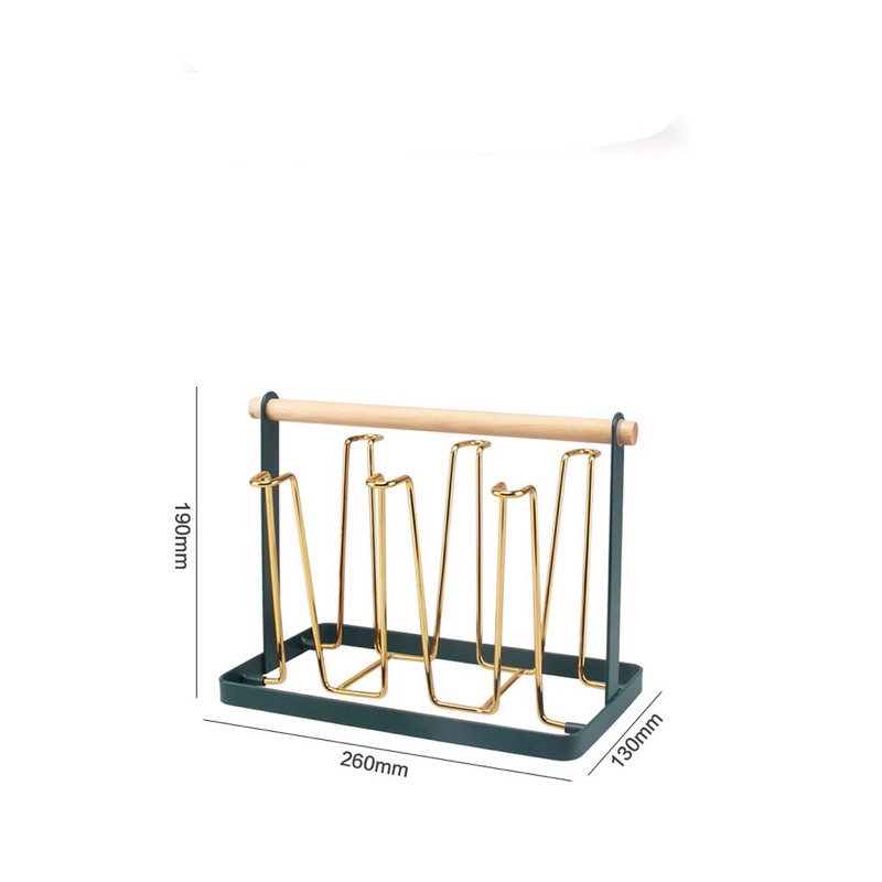 Giá kệ úp cốc cao cấp sơn tĩnh điện tay cầm gỗ | KỆ LY CỐC HỢP KIM TAY CẦM GỖ TRE CAO CẤP