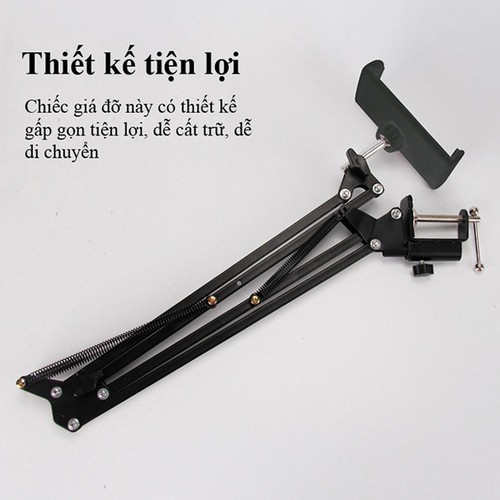 +Giá kẹp điện thoại, máy tính bảng có chân kẹp đầu giường, bàn các loại được thiết kế chân kẹp chắc chắn vào bề mặt vật giúp giá đỡ nằm trên bề mặt vật một cách an toàn mà không lo rơi rớt khi đang sử dụng.