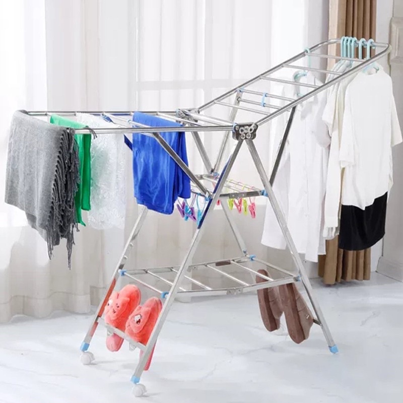 Nhà cửa & Đời sống > Dụng cụ chăm sóc nhà cửa > Dây phơi & giá phơi quần áo || Giá Phơi quần áo bằng ninox,Kệ Phơi Đồ Inox Để Sàn Thông Minh Gấp GọnCòn hàng