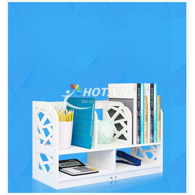 Giới thiệu Giá Sách Để Bàn Chất Liệu Bằng Gỗ Nhựa Chống Thấm Nước - Chịu lực tốt - 2 Tầng 3 Ngăn