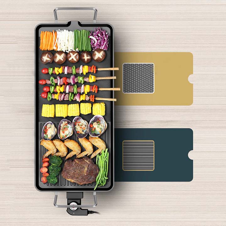 Bếp có 5 mức độ nhiệt khác nhau, dễ dàng điều chỉnh qua núm xoay cho phù hợp với ý thích. Mặt bếp lớn, gồm 2 phần: một mặt phẳng và một mặt rãnh, có thể làm chín nhiều thực phẩm cùng lúc.