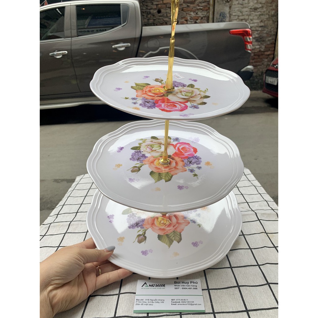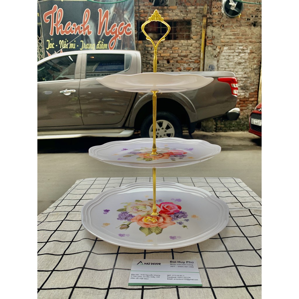 Nhà cửa & Đời sống > Bộ đồ bàn ăn > Dĩa || [Giá sỉ đồ decor] Khay kệ đựng bánh kẹo hoa quả mứt Tết 3 tầng bằng nhựa phíp trắng Sài Gòn có hoa văn đẹp giá rẻCòn hàng
