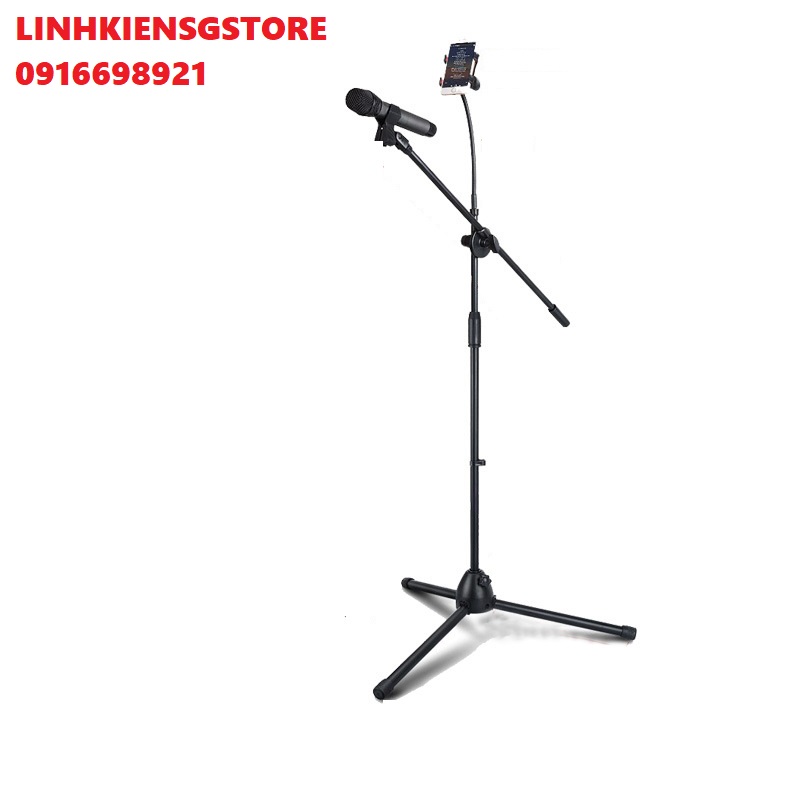 GIÁ SỈ Tripod Chân Đứng Boom Mic Stand Kèm Kẹp Điện Thoại Tăng Giảm Chiều Cao