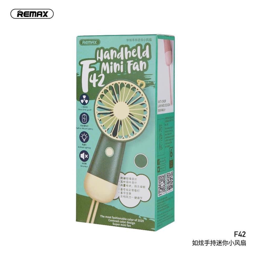 Giới thiệu [ Giá siêu rẻ,chính hãng ] Quạt cầm tay remax F42 có dây đeo pin dung lượng 500mAh - Quạt remax F42 có đèn loại 5 cánh