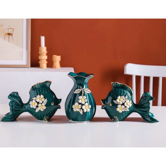 Giá siêu rẻ- Tượng trang trí gốm sứ men màu xanh Bắc Âu