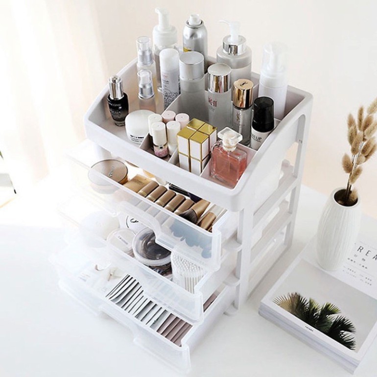 - Kệ Đựng Mỹ Phẩm Đồ Trang Điểm Trang Sức 4 Tầng Ngăn Kéo Bền Đẹp chất liệu nhựa PP bền đẹp và chắc chắn là sản phẩm tiện dụng cho các bạn nữ trên bàn trang điểm .