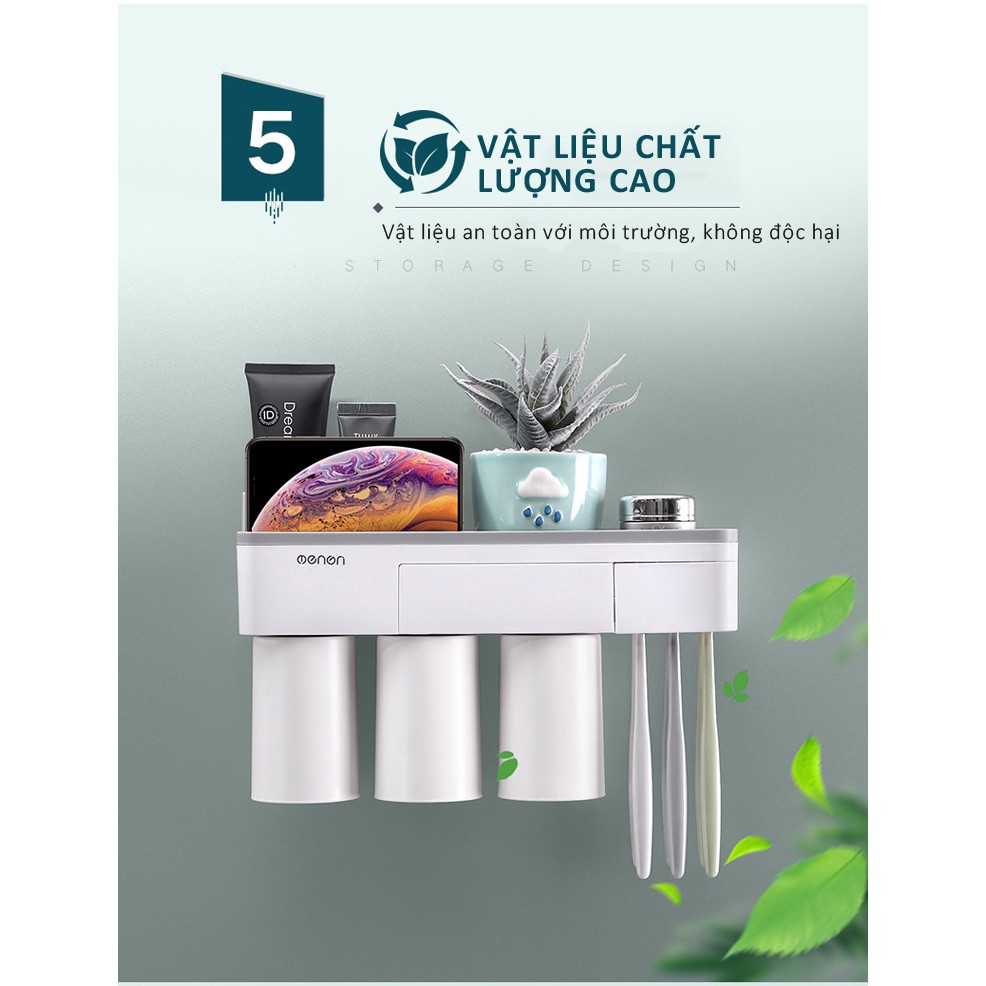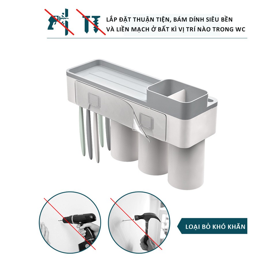 Giá Treo bàn chải dán tường phòng tắm sang trọng, kệ treo bàn chải và ly súc miệng nam châm (tặng kèm ly)