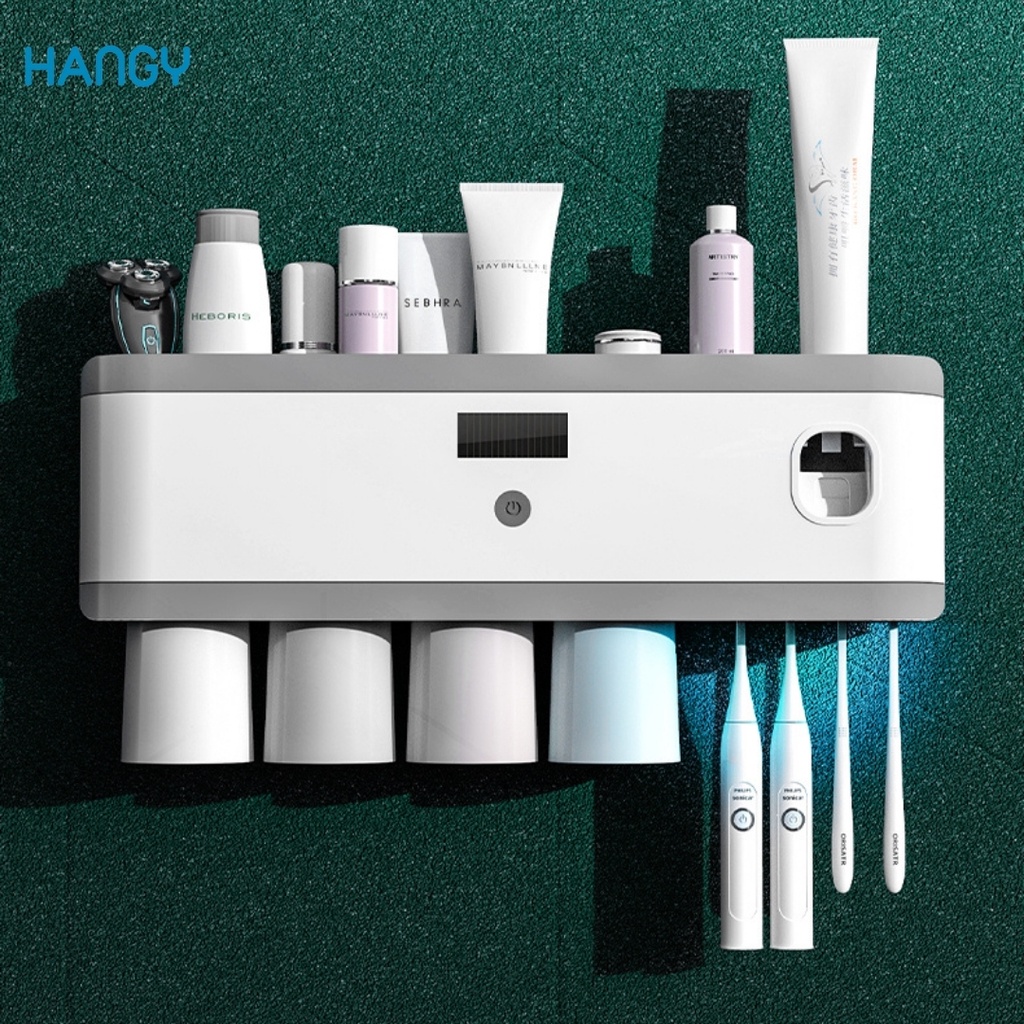 Nhà cửa & Đời sống > Đồ dùng phòng tắm > Kệ đựng bàn chải, kệ nhả kem đánh răng || Giá treo bàn chải đánh răng và cốc kết hợp bộ nhả kem đánh răng tiệt trùng bằng tia UV RENAI HANGYCòn hàng