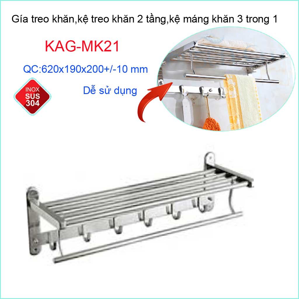 Giá treo khăn Inox 304 3 trong 1 , máng khăn inox 3 in 1 KAG-MK21
