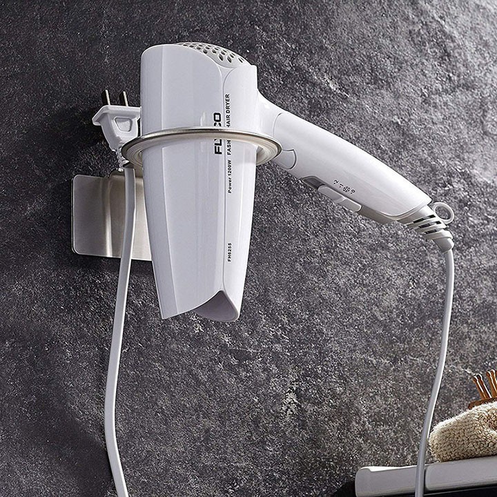 Giá treo máy sấy tóc INOX dán tường gạch men keo 3M